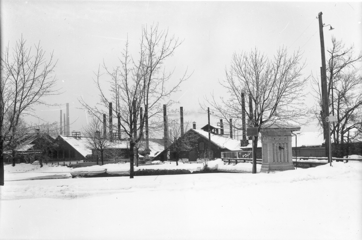 Gjuteri, glödgugnshus och rörvalsverk. Vyn sedd från brukskontoret.