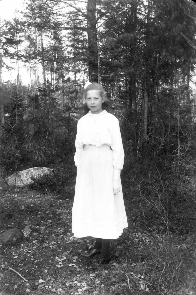 Emmy Eriksson, född 1905, från Lenninge 6:42, där fadern var trädgårdsmästare. Foto i sept 1917.