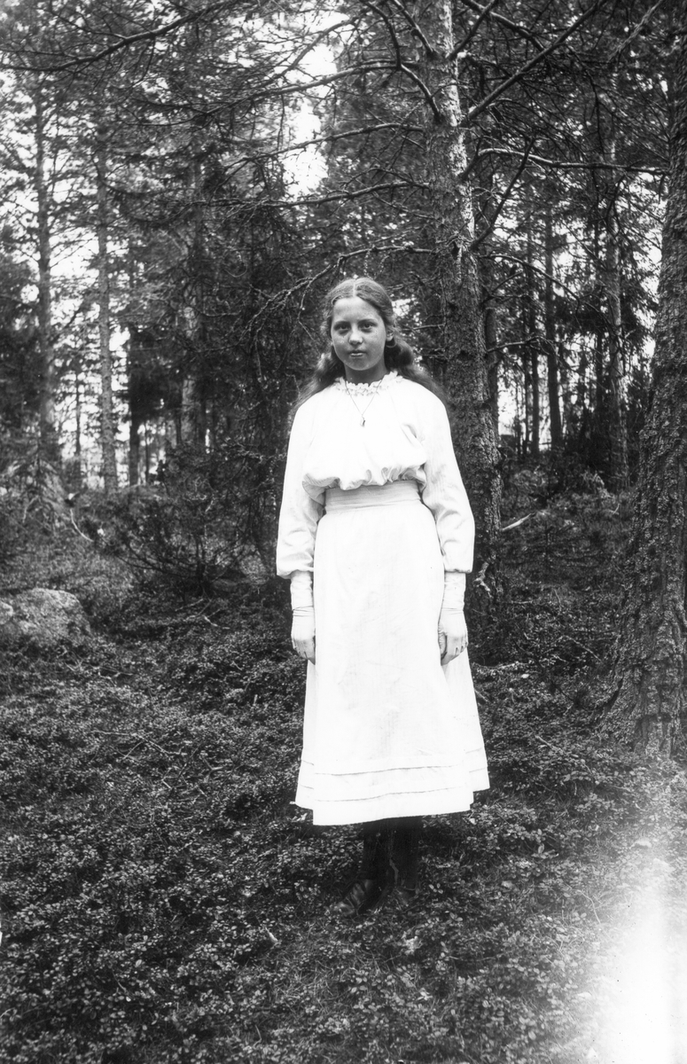 Tilda Eriksson, född 1903, från Lenninge 6:42, där fadern var trädgårdsmästare. Foto 5 maj - 25 juni 1918.