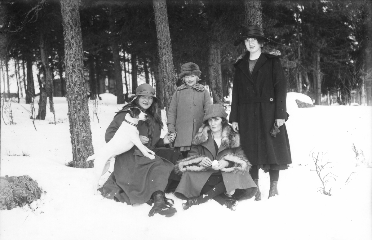 Tredje personen från vänster är Anna Nilsson, fästmö till Målar-Emil, övriga personer okända.