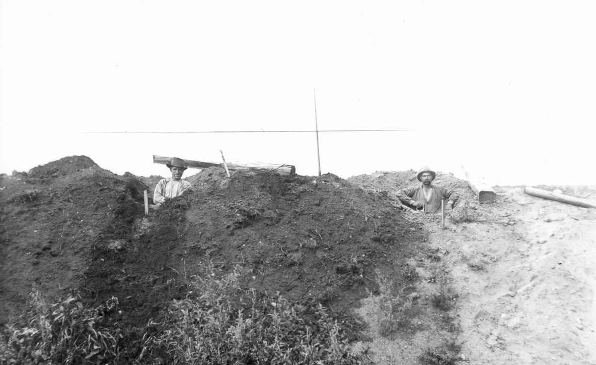 Till vänster "Bergs-Olle", Olof Persson, född 1863, Voxsätter 1:8. Foto 1917.