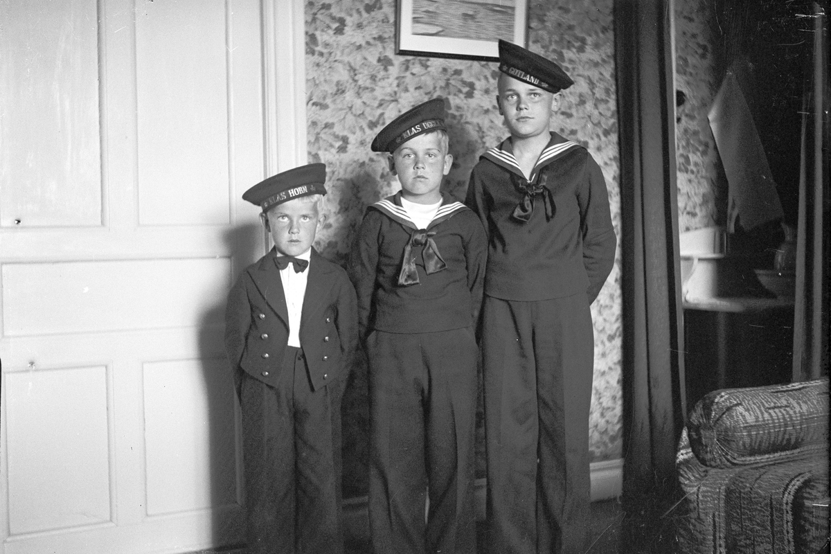 Bernhard Skoglunds barn. Från vänster Sven, Olle och Gunnar