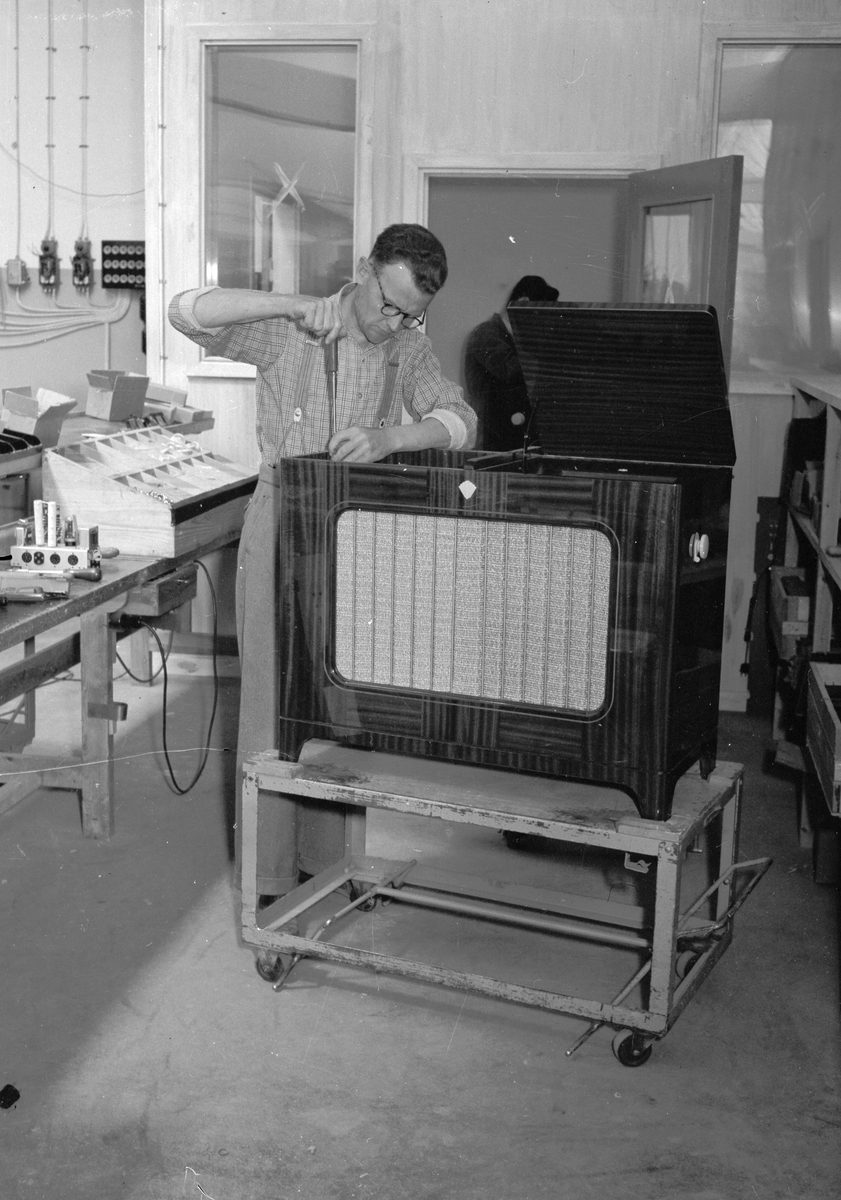Agas nya fabrik, vid pressvisningen interiört och exteriört. Juli 1950.