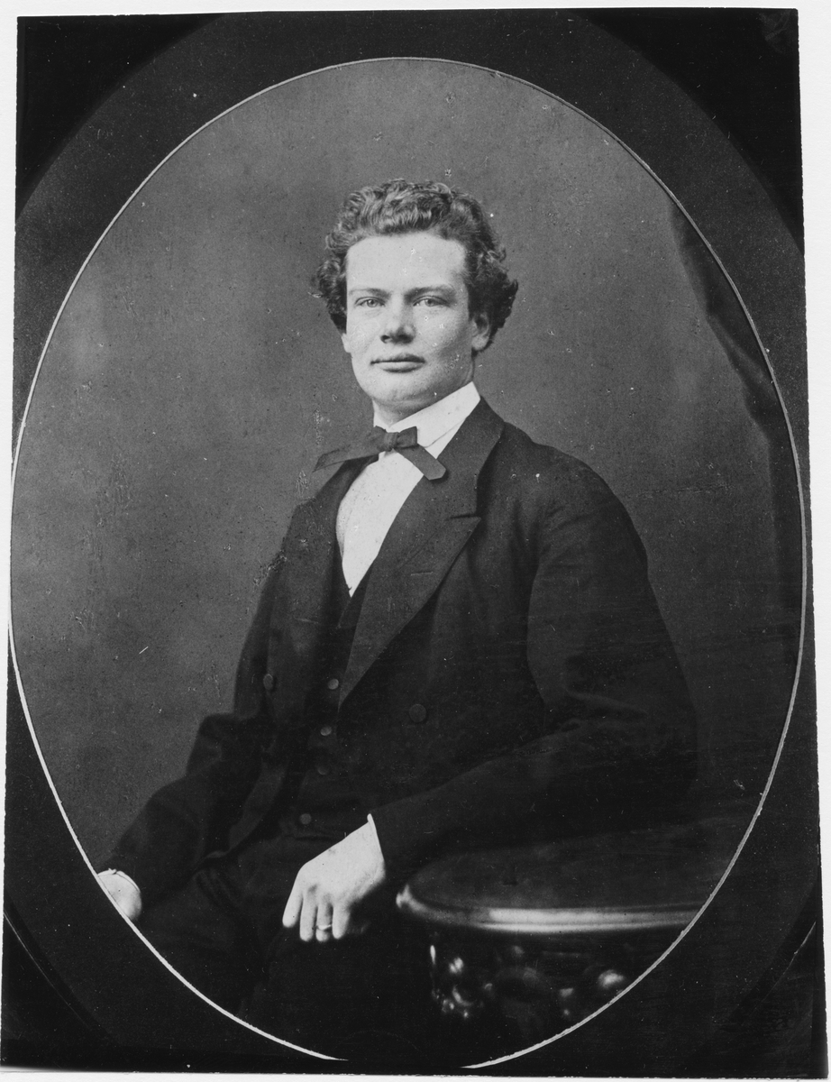 Olof August Brodin (1840-1911) skeppsbyggare, fartygskonstruktör och skeppsredare. Var även politiker, ledamot av såväl stadsfullmäktige i Gävle samt representant för staden i riksdagens andra kammare. Far till redaren och skeppsbyggaren Erik Brodin. Porträttet taget i hans ungdom.