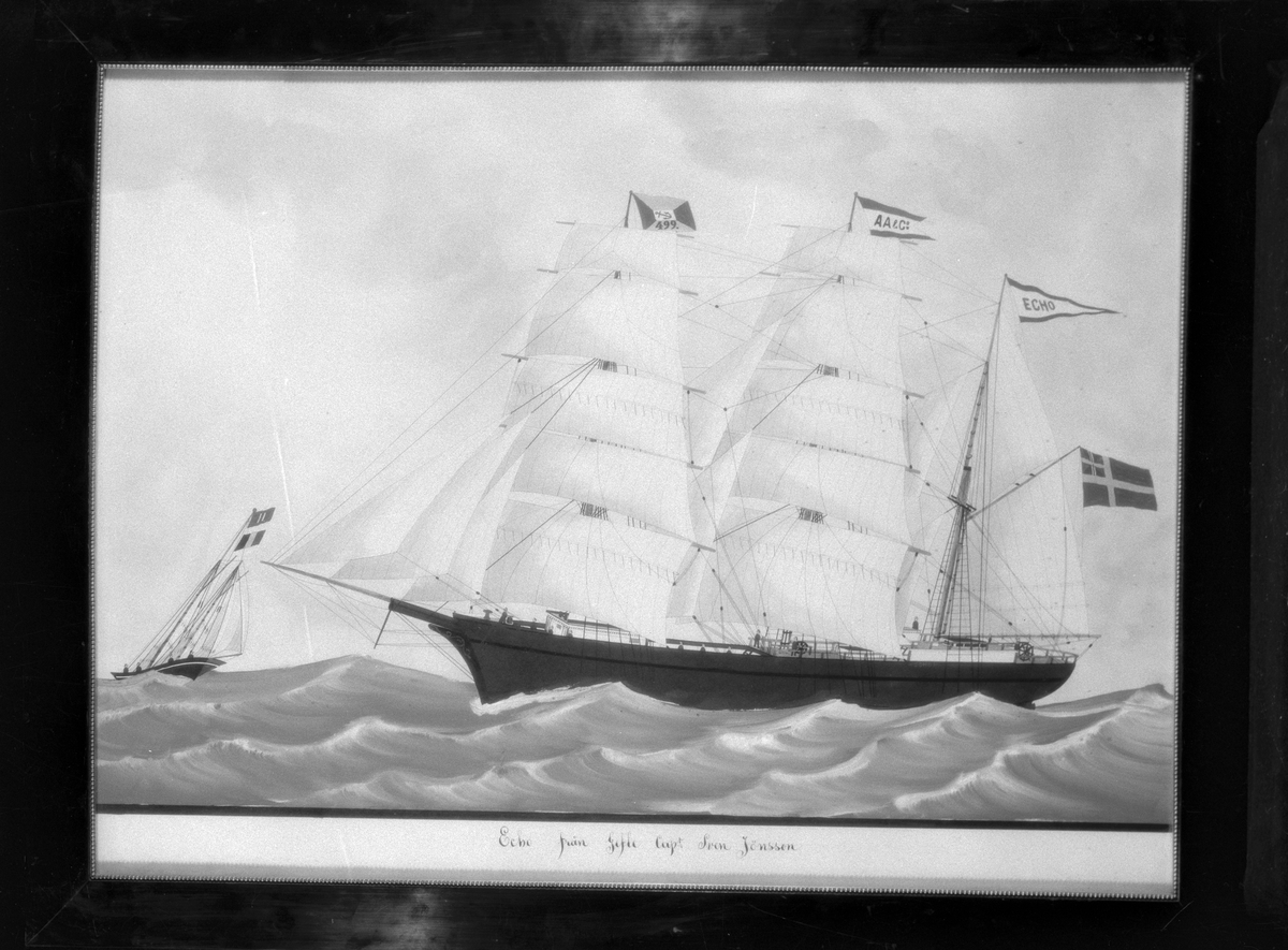 Barkskepp "Echo/Ecko" från Gefle. Akvarell. Fartygsutställningen i Gävle år 1933.