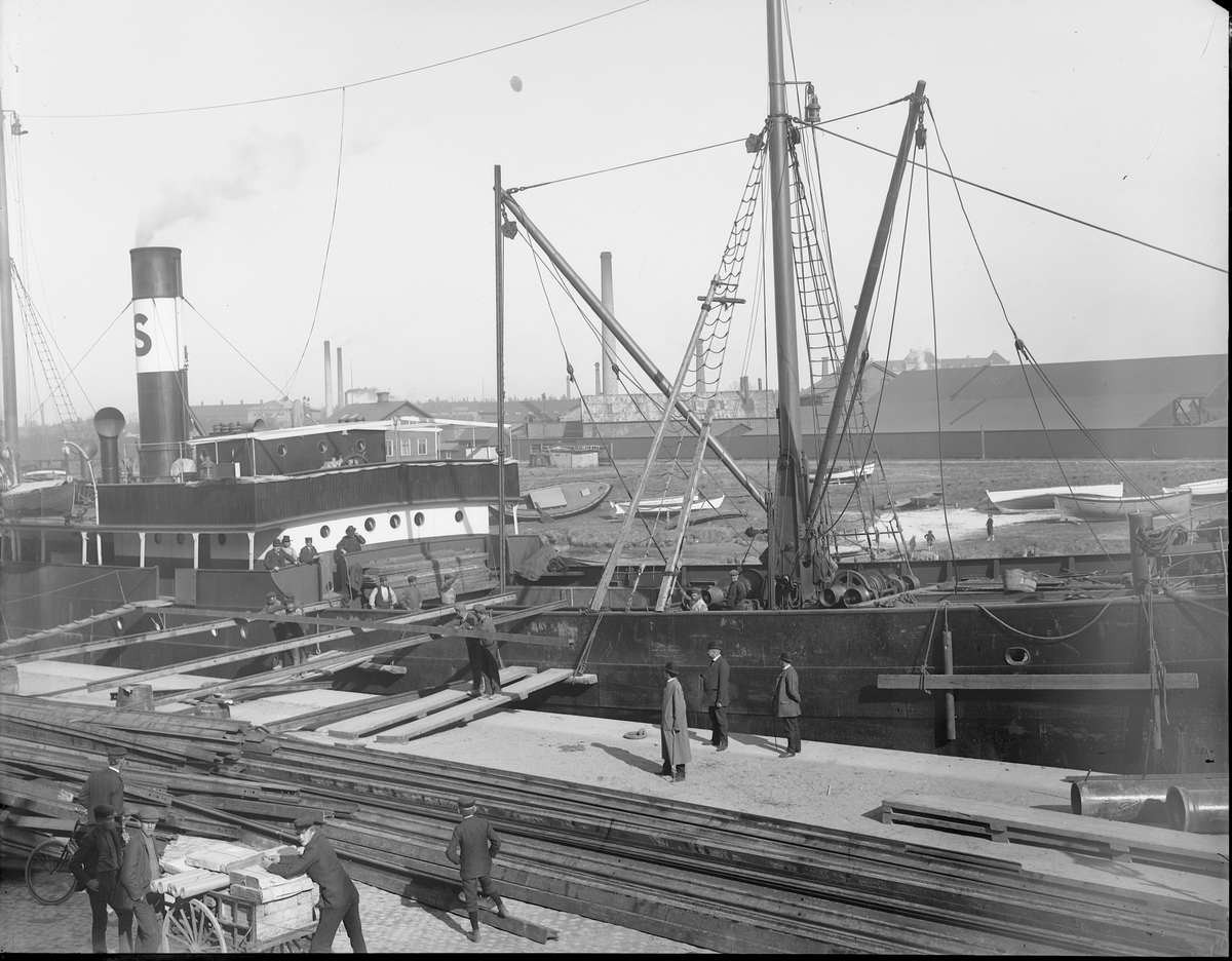 En bild från Gävle Hamn. Lossning eller lastning av räls.