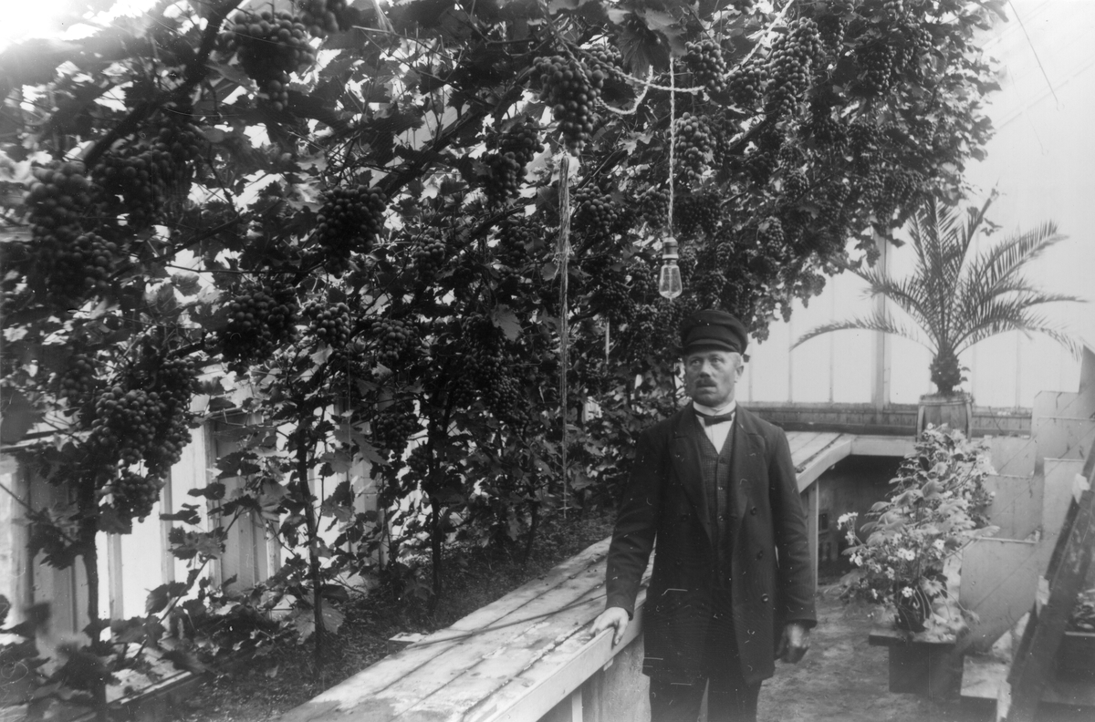 Trädgårdsmästare N E Eriksson i växthuset vid Lenninge herrgård.