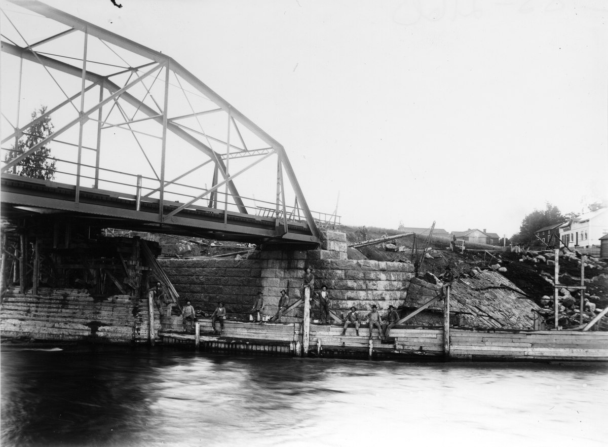 Från slutskedet av brobygget, södra landfästet. Foto 1917.