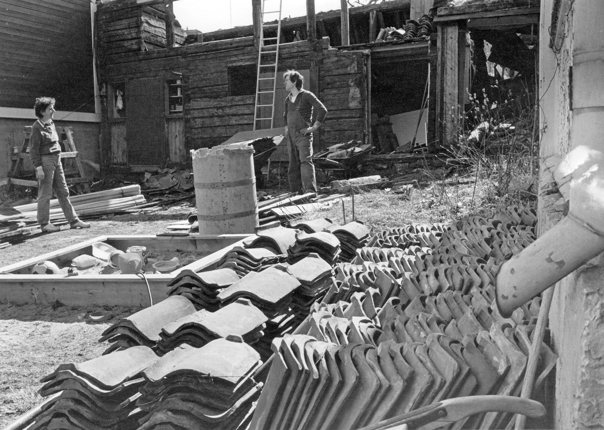 Husrenovering,tegelpanna. Barbro Sollbe och är fastighetsägaren, Lars-Ove Sunemo, Smedjegatan 10, Gävle.