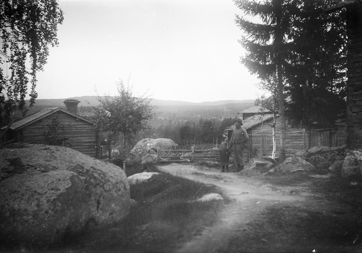 Utsikt från Höks torpet. Med på bilden Per Persson med sitt barnbarn Hildur Lind.