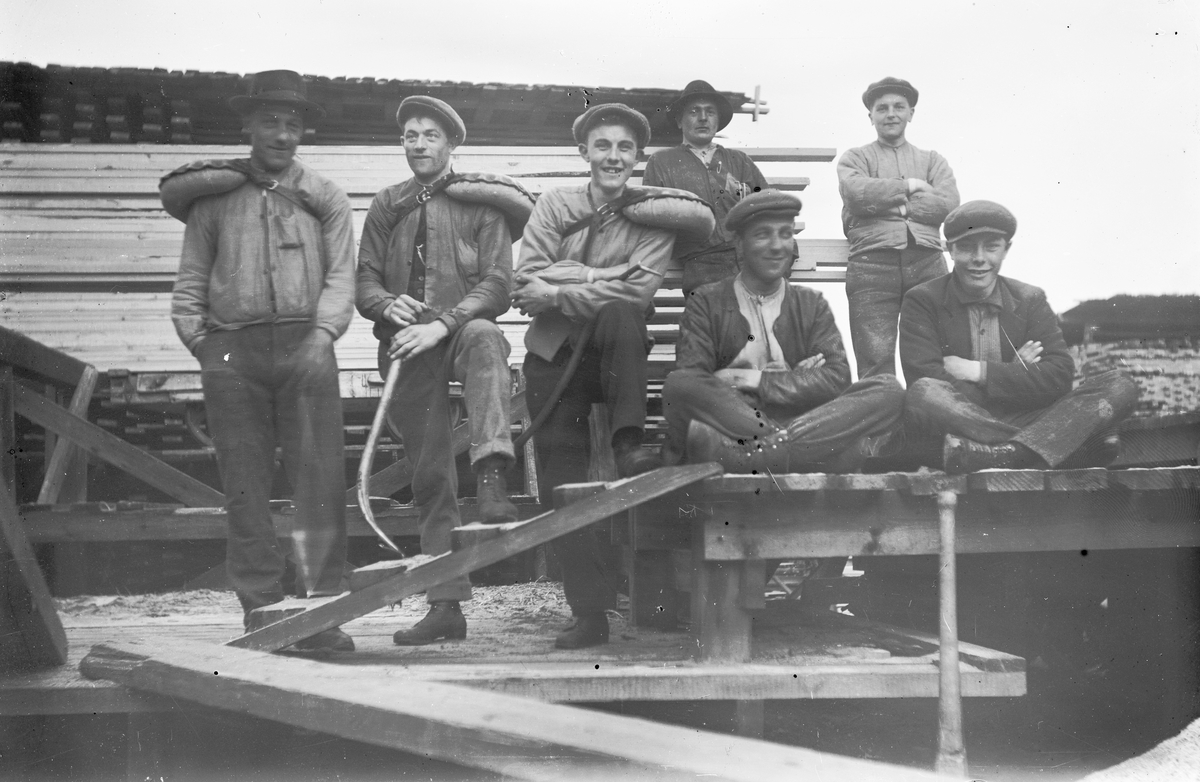 Silfors Sågverk, Långhed. Stabbläggare. Gunnar Persson, Stens trea från vänster.