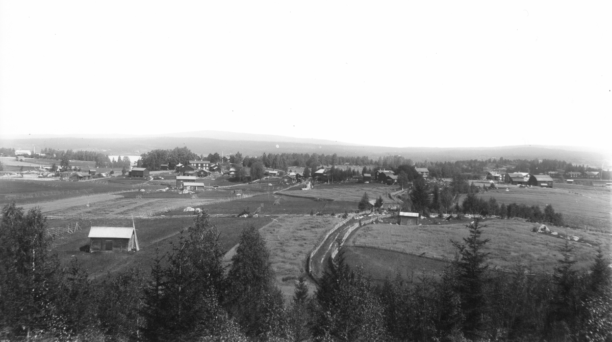 Vy över Voxsätter, troligen 1915 (gamla bron, gamla skolan).