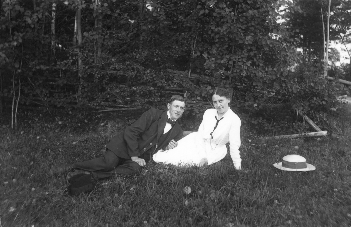 "Stor-Pelles" Per Eriksson, född 1890, Lenninge 6:58 med hustrun Hilda. Foto 1917.