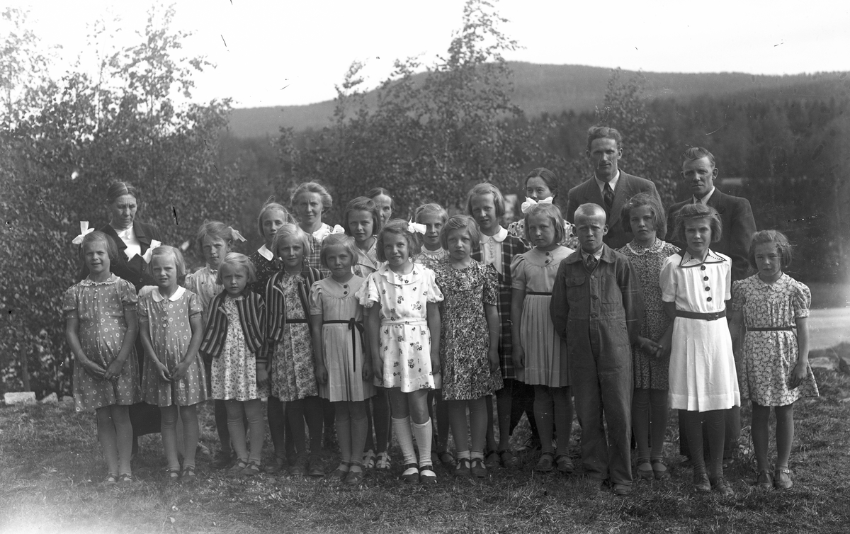 Barn från Lilltjära, eventuellt Barntemplet Snöflingan N.T.O. Fröken Hernkvist, dotter Ingrid, Karin Andersson, Lindberg från Lilltjära, Ann-Marie Forsman och många okända