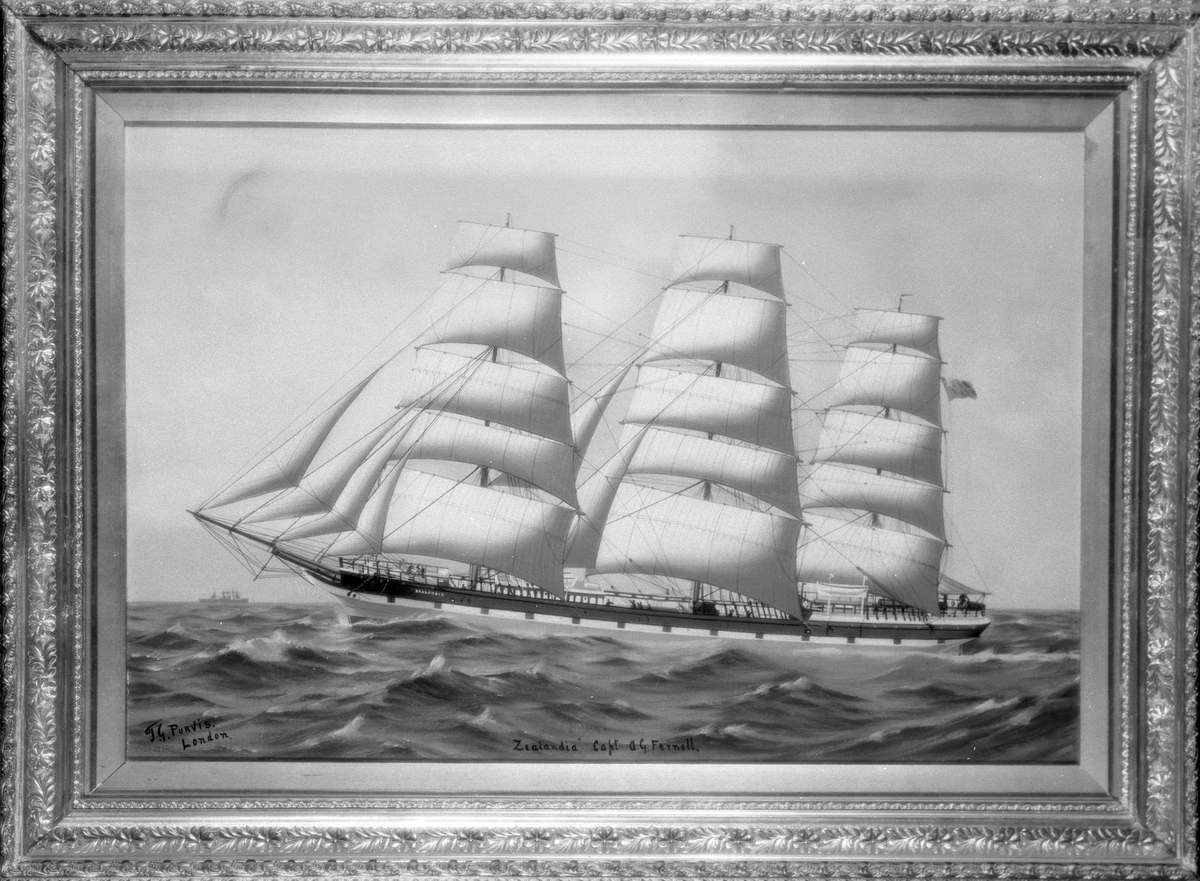 skepp "Zelandia". Oljemålning. Fartygsutställningen i Gävle år 1933.