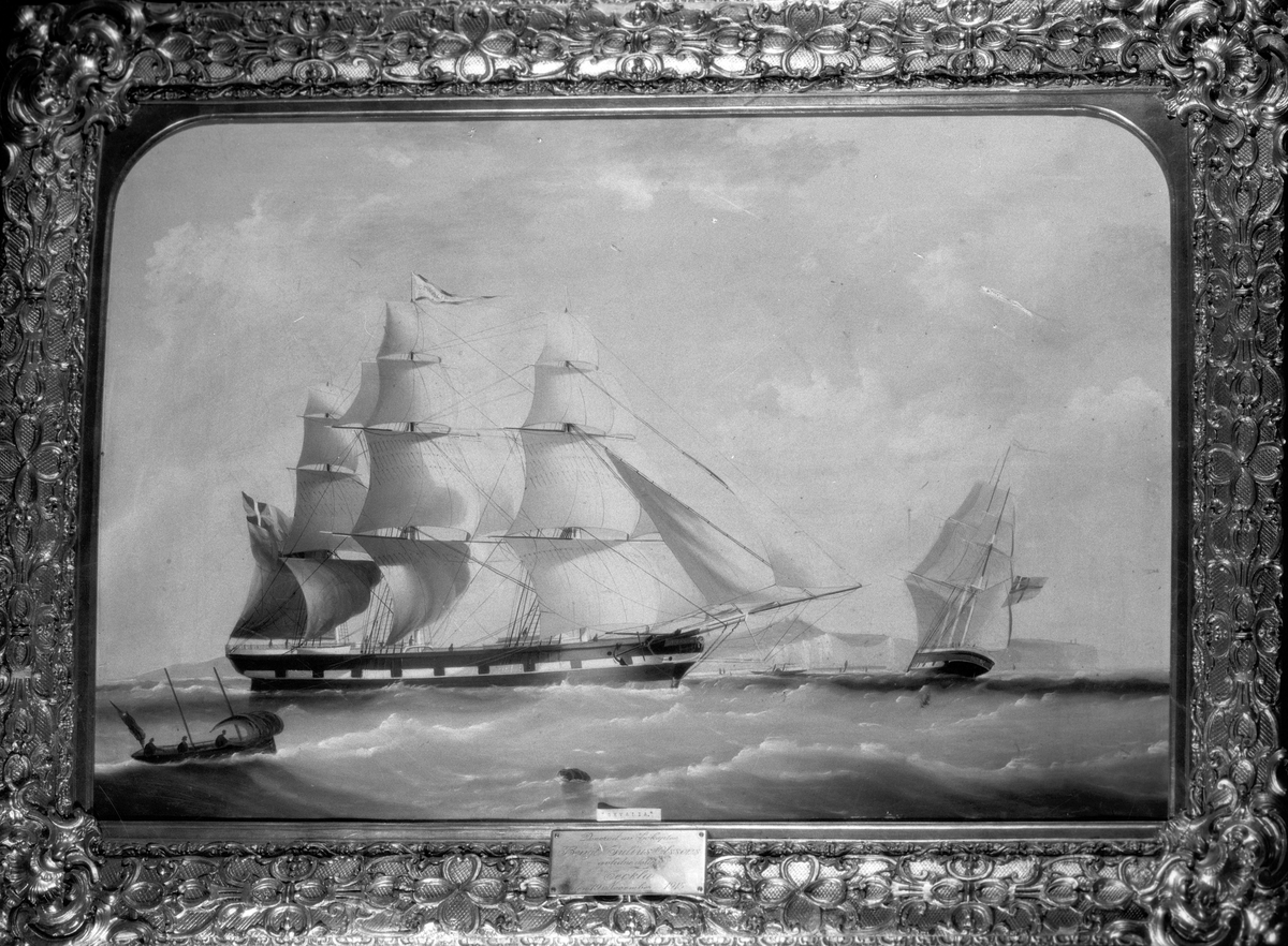 Skepp "Gevalia". Oljemålning, Fartygsutställningen i Gävle år 1933. Ägare Sjömanshuset.
