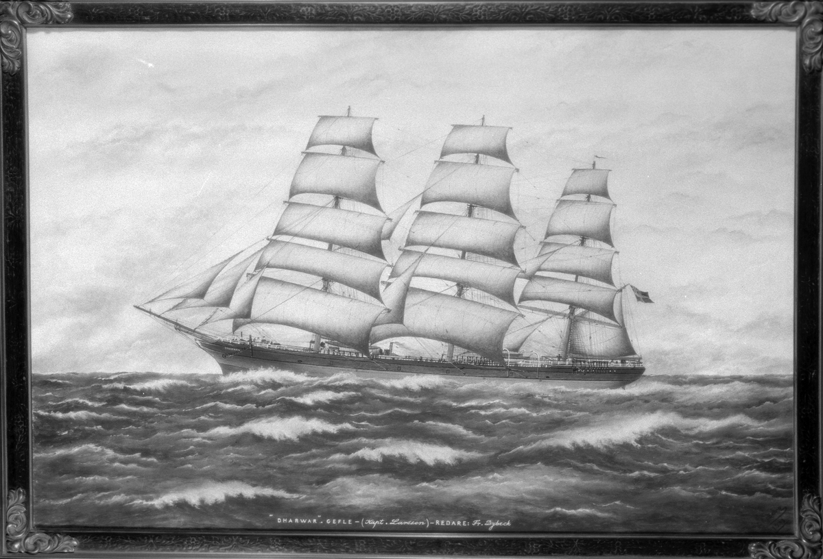 Skeppet "Dharwar", Gefle. Akvarell. Fartygsutställningen i Gävle år 1933.