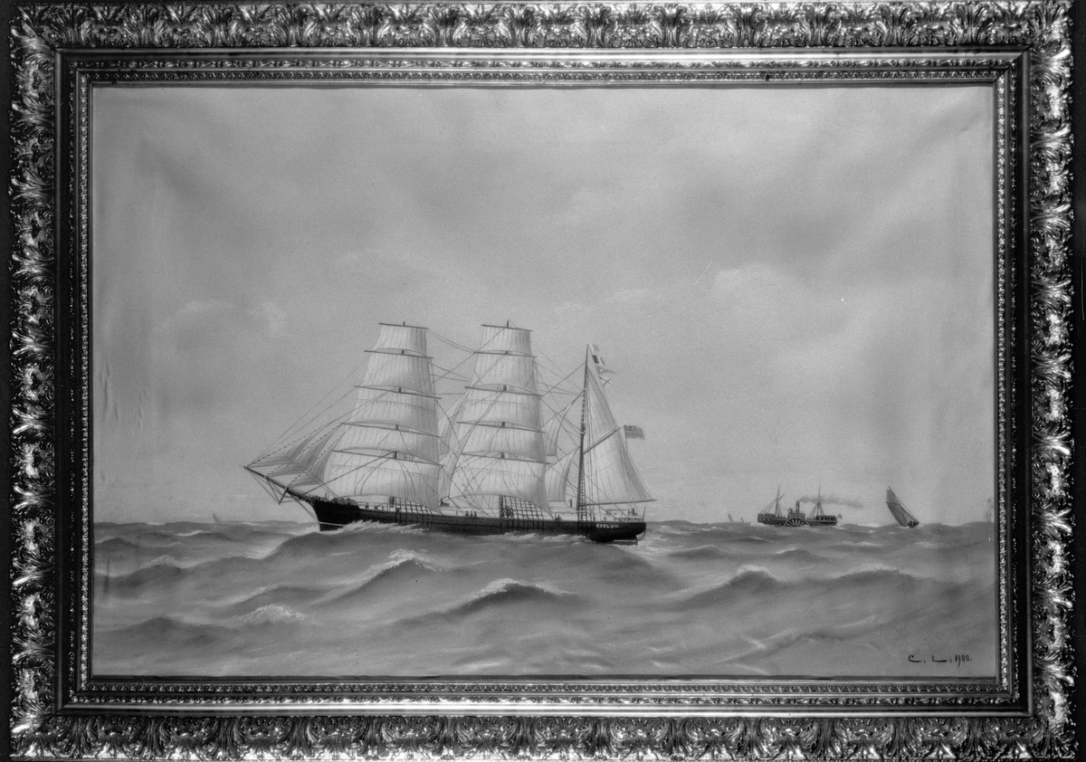 Barkskepp "Ceylon". Oljemålning. Fartygsutställningen i Gävle år 1933.