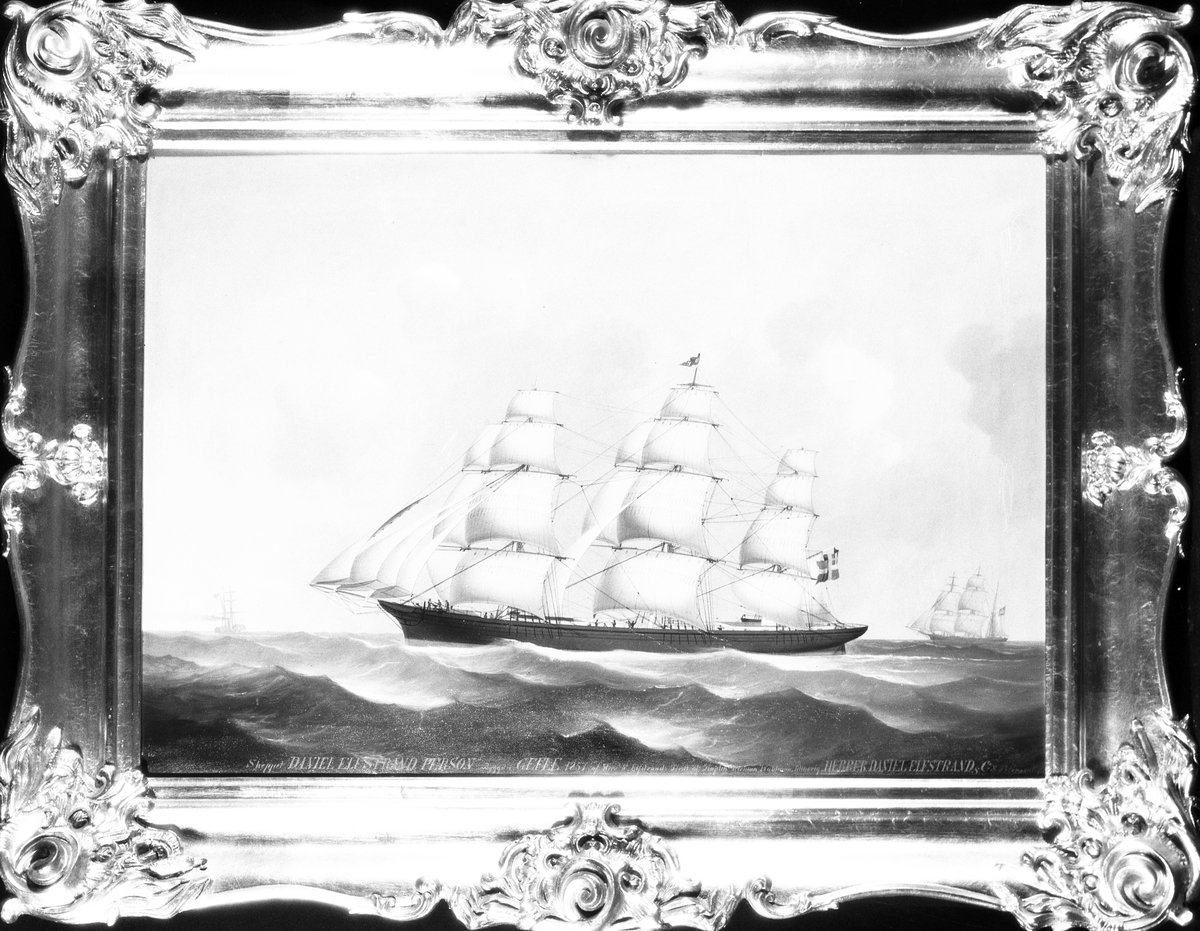 Skeppet "Daniel Elfstrand Persson", Gefle. Oljemålning. Fartygsutställningen i Gävle år 1933.