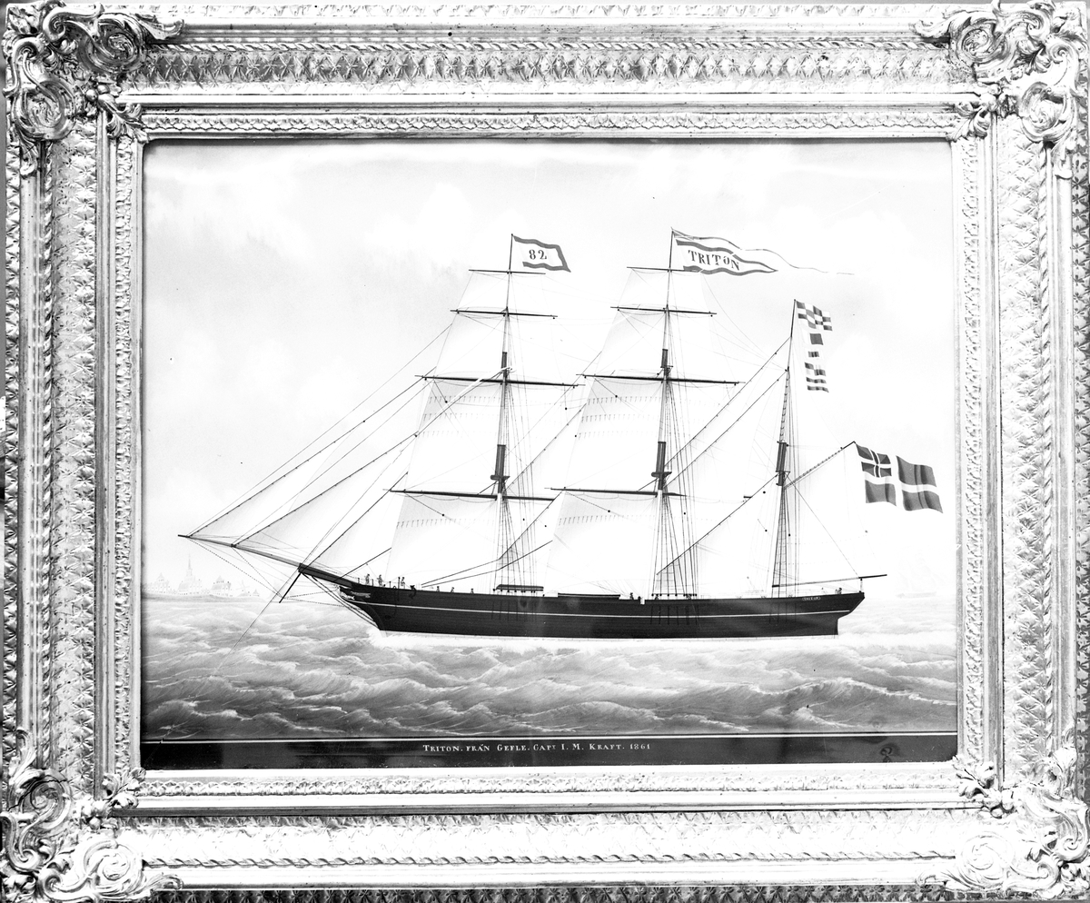 "Triton" af Gefle. Glasmålning. Ägare Fartygsbefälhavaresällskap. Fartygsutställningen i Gävle år 1933.