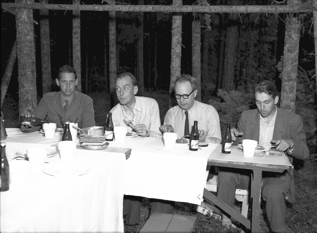 Vägbygge några mil norr om Storvik. Augusti 1950. Äter ute i skogen. Reportage för Gefle Dagblad och Norrlands-Posten.