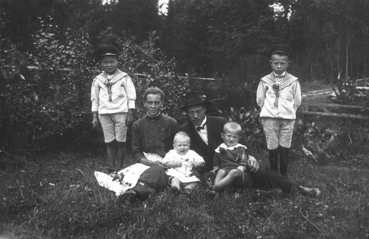 Familjen Lars Larsson. Från vänster: Holger Larsson, modern Hilma, fadern Lars, de små är från vänster Hilmer, Melker och Helmer längst till höger.