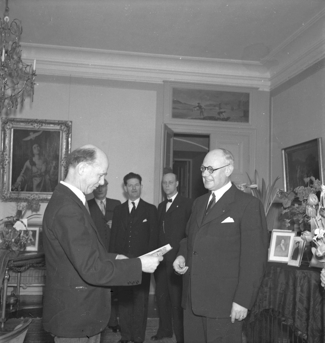 Titel: Landshövding Sandlers uppvaktning på Gävle slott vid 60-årsdagen.