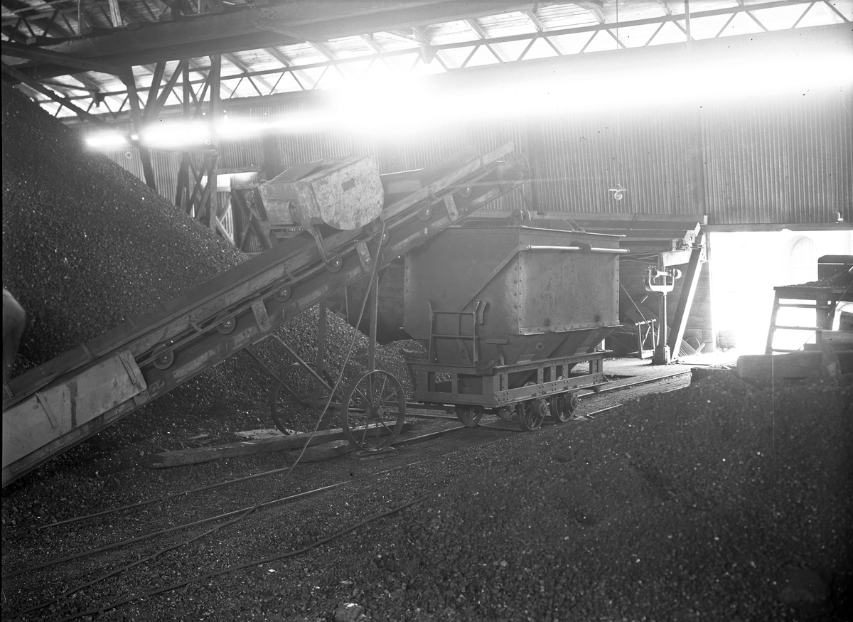 Titel: Gefle Stads gasverk, Brynäs Anläggningen togs i bruk 1893, den större gasklockan uppfördes 1898. Ammoniakverk uppfördes 1903 och ett kokstorn 1926. Produktionen av gas pågick till 1966 då den siste abonnenten Skoglund & Olsson övergick till eldrift. Den mindre gasklockan ritades av Ferdinand Boberg, den större av John Eklund