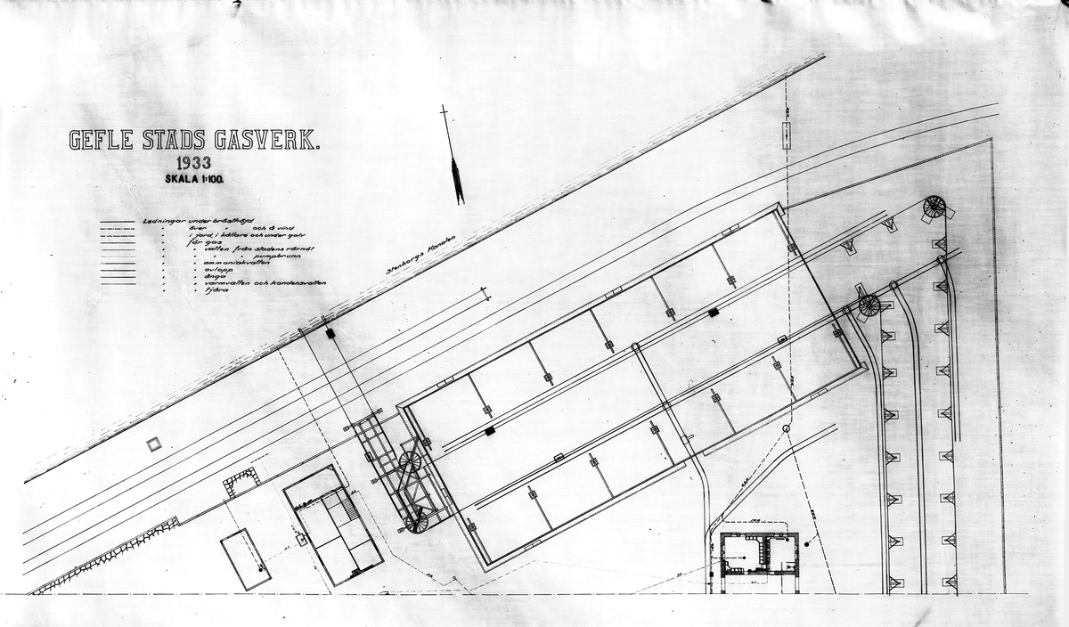 Den mindre gasklockan ritades av Ferdinand Boberg, den större av John Eklund. Ritning från 1933