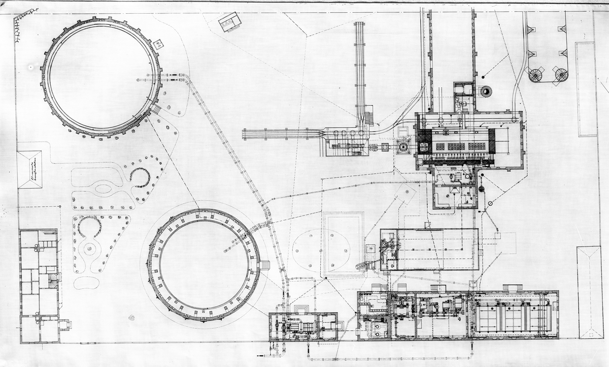 Den mindre gasklockan ritades av Ferdinand Boberg, den större av John Eklund. Ritning från 1933