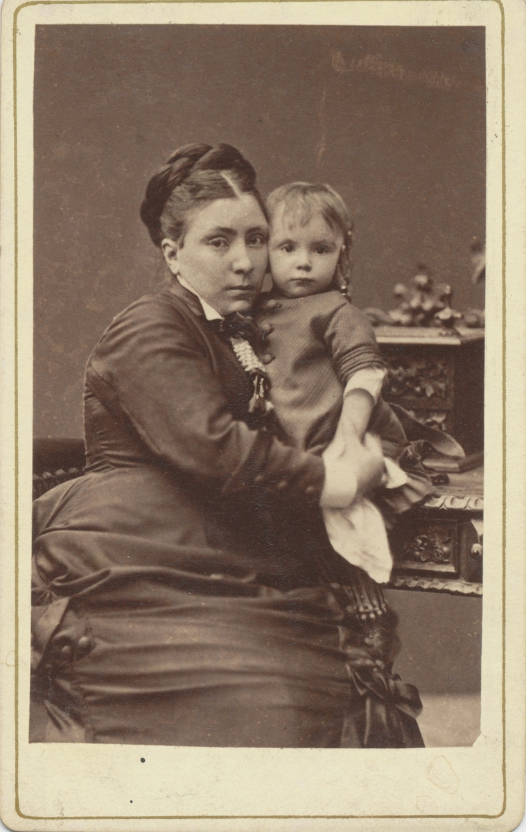 Titel: Adele (Adelaide) von Horn, född Rettig. Syster till John Rettig. I famnen håller hon sitt barn.