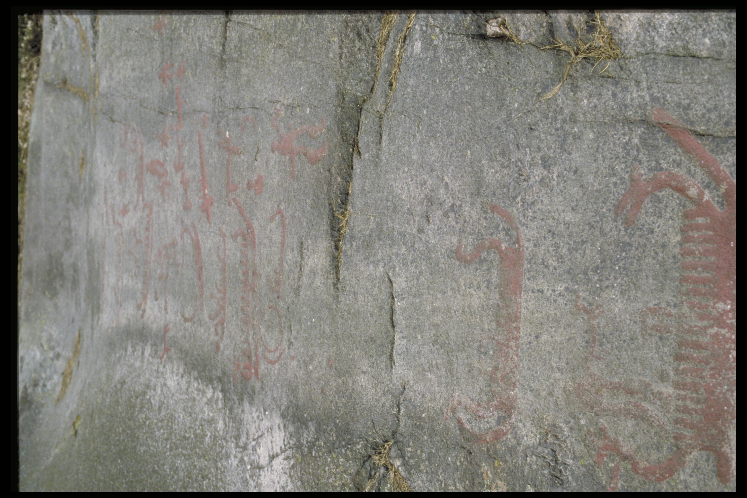 Skepp, djur och människor. Tidvis vattenöversilad och med utfällningar.