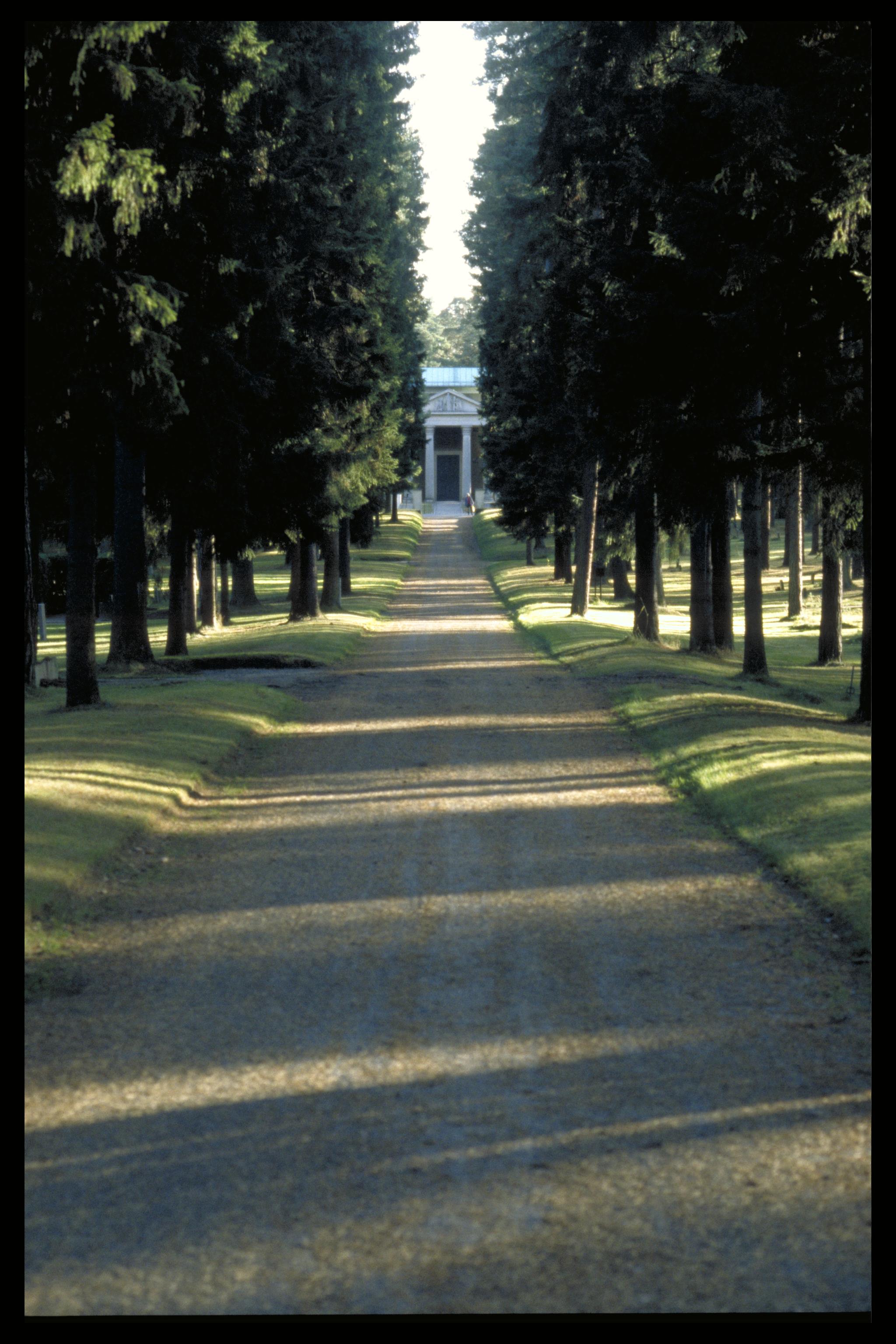 Sju källors väg med Uppståndelsekapellet i bakgrunden.