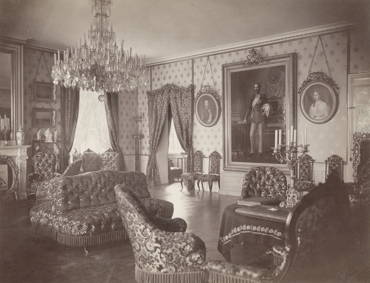 Titel: Salong med påkostad möblering, sannolikt i Villa Rettig, Gävle.