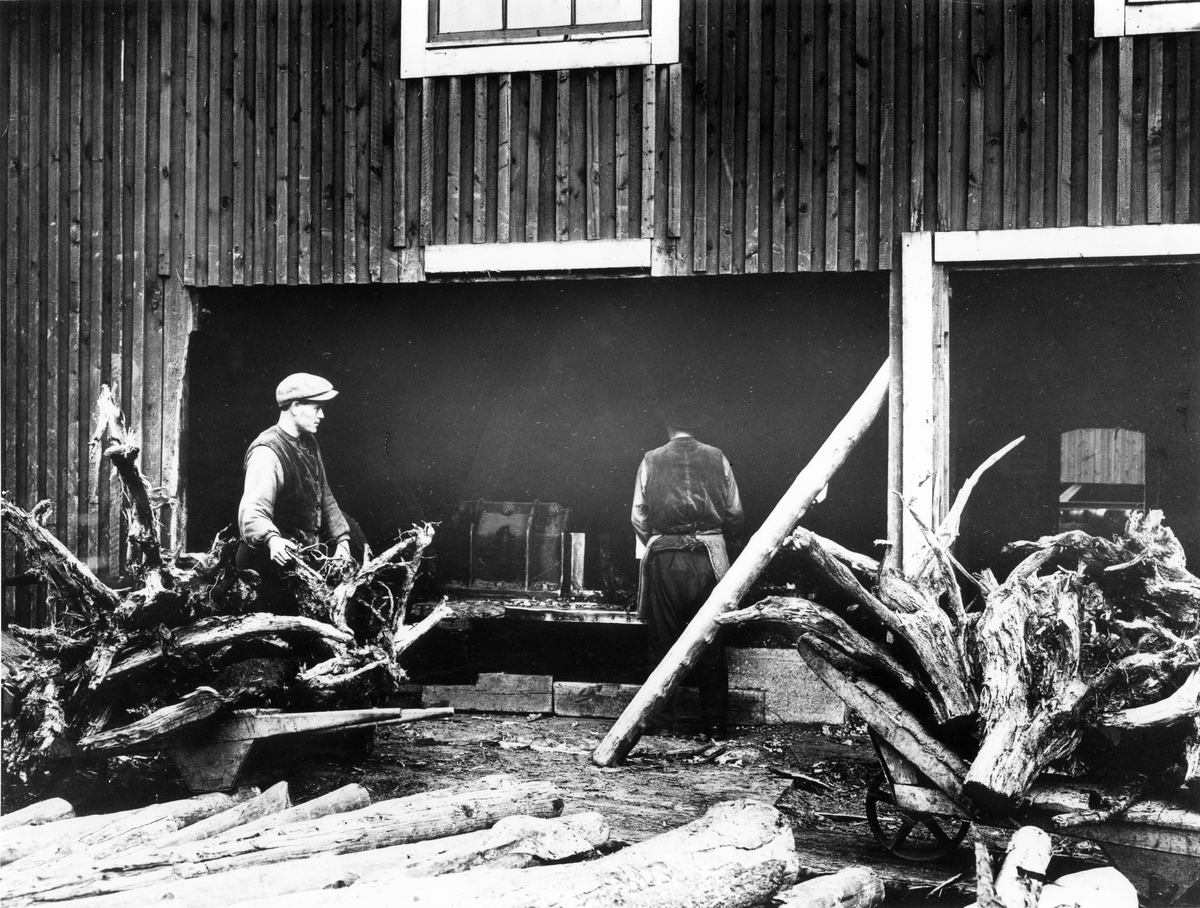 Forsbacka jernverk. Stubbklippning. Foto: Carl Larsson, 1920-talets början.