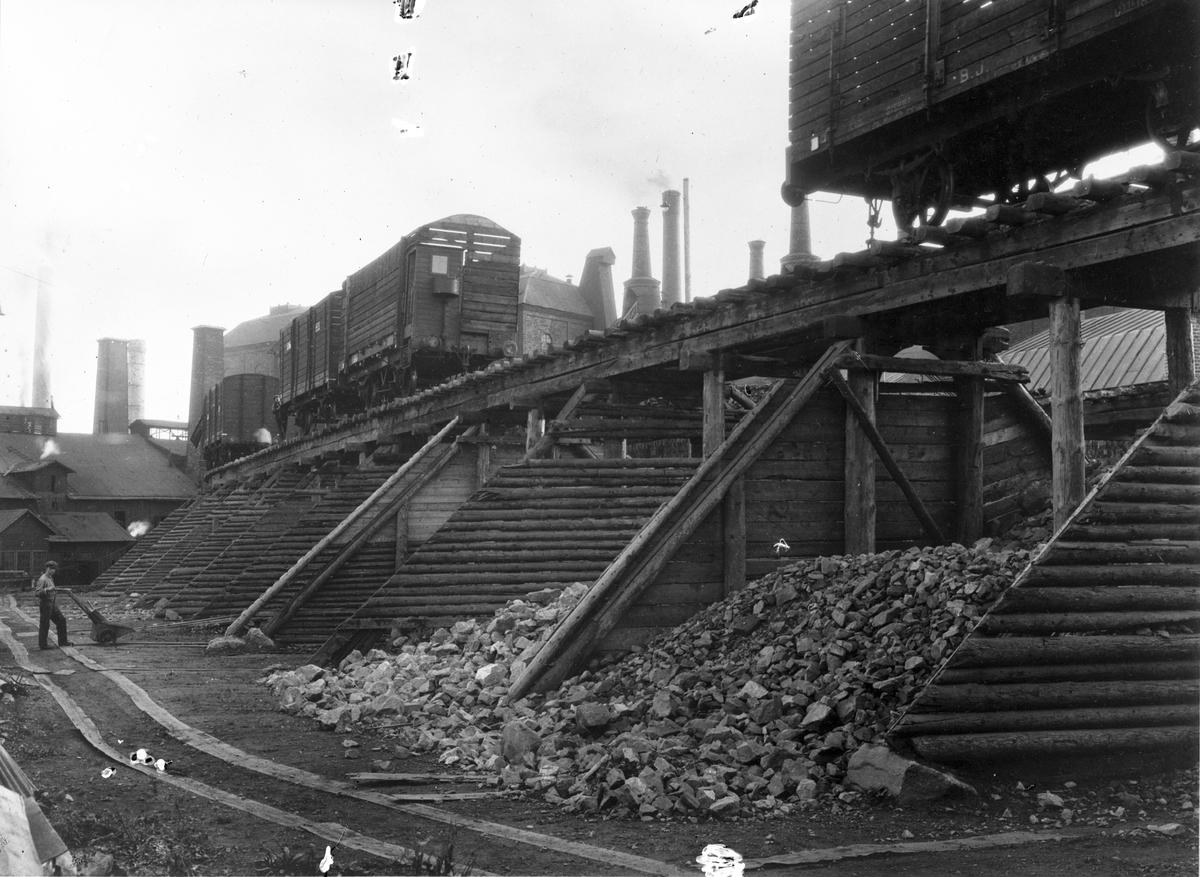 Forsbacka jernverk. Ämnesgården. Foto: Carl Larsson, 1920-talets början.
