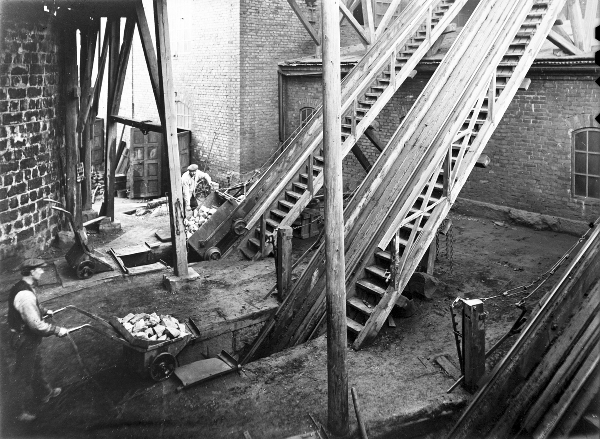 Forsbacka jernverk. Malmuppfordringen till rostugnarna. Foto: Carl Larsson, 1920-talets början.