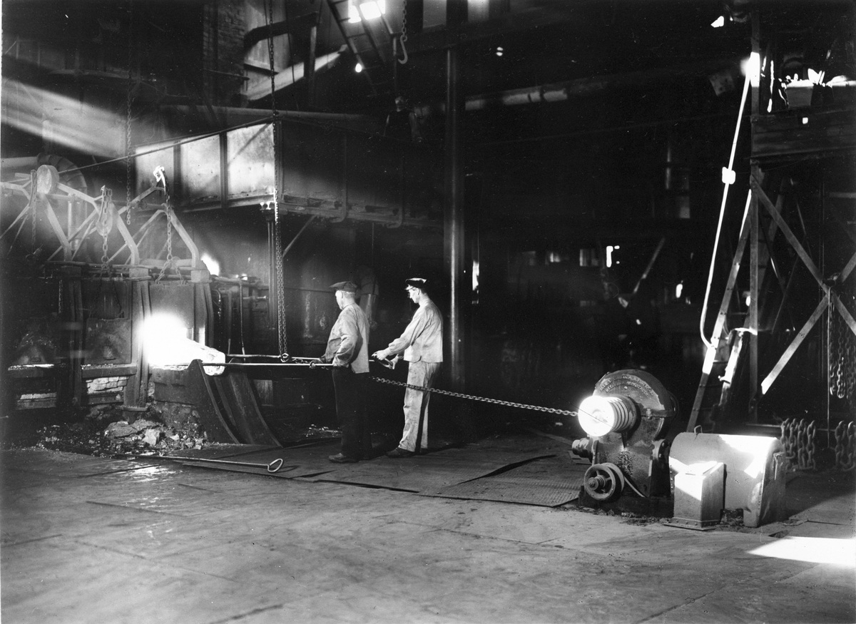 Forsbacka jernverk. Götvalsverket, ugnen. Foto: Carl Larsson, 1920-talets början.