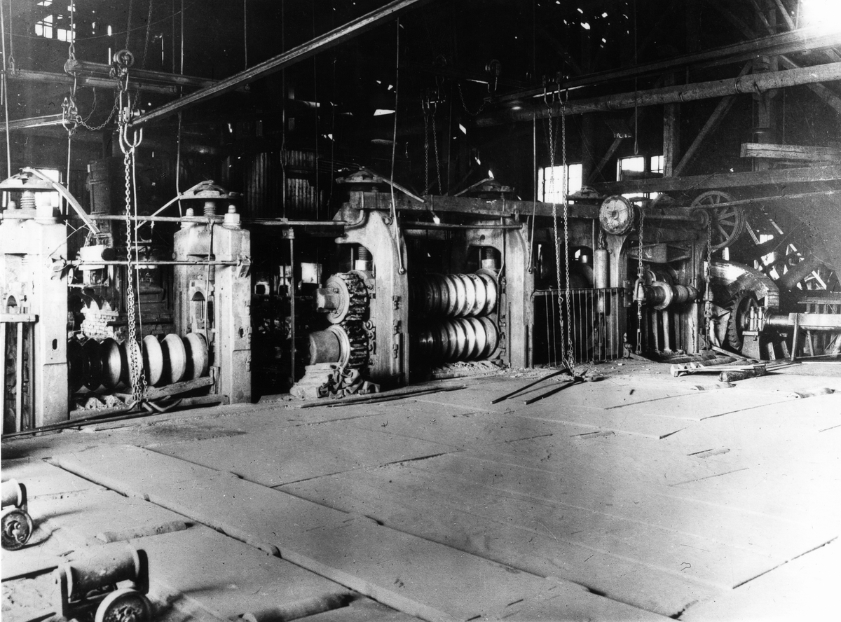 Forsbacka jernverk. Götvalsverket, valsparen eller valsstolarna. Foto: Carl Larsson, 1920-talets början.