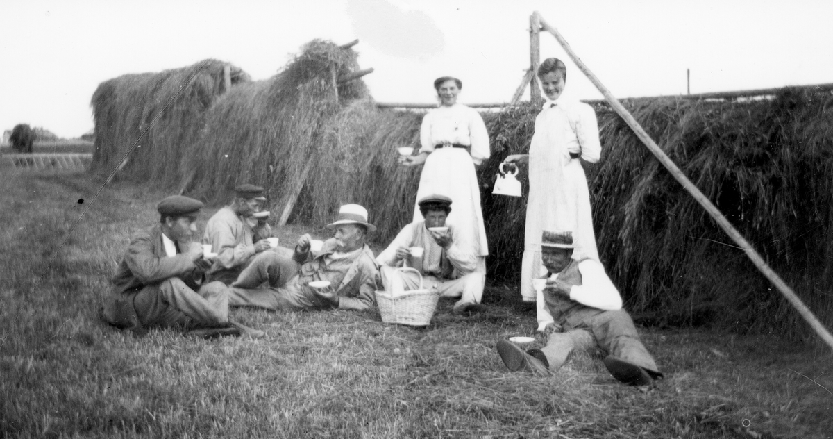 Rast i slåttern för Frank Engman, P. Bergman, J. Östblom, Manne Danielsson, Berta Sjöberg, Evelina Björklund och Johan Lindholm