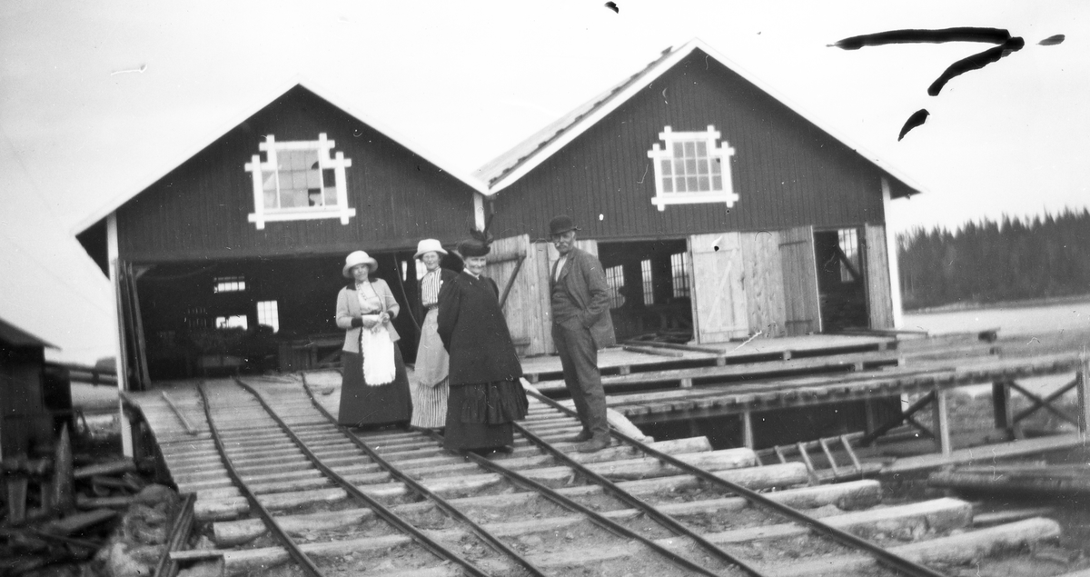 Sågen i Axmarby. Från vänster 1. Ellida Eriksson, 2. Elsa Ö. Sjöblom, 3. Anna Östblom och 4. Jöns Östblom.