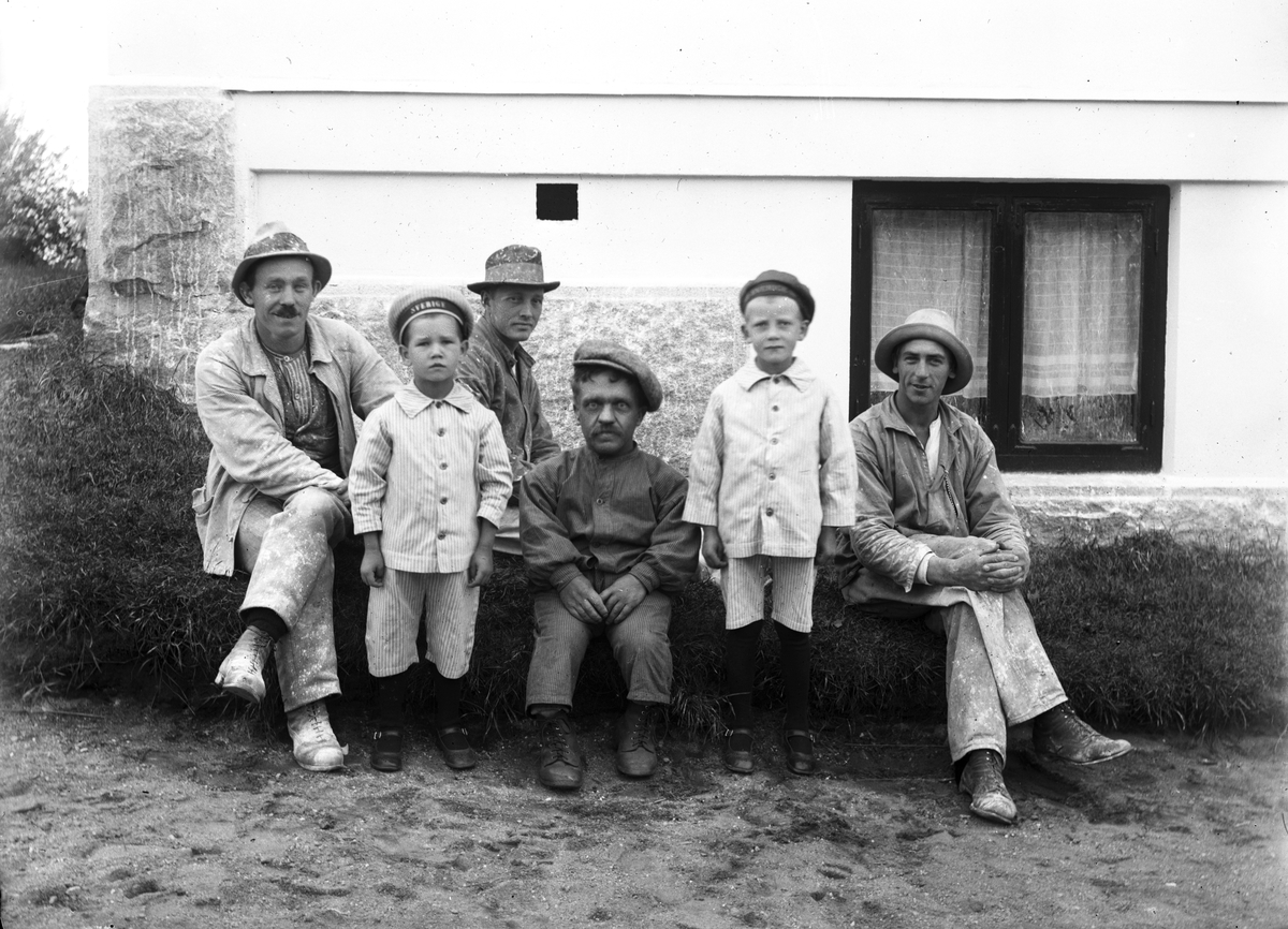 "Lill-Johan", två pojkar samt murare vid gamla kommunhuset ("fattigvården") i Hamrånge.