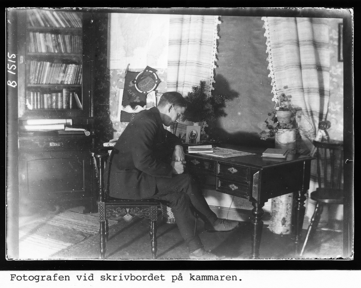 Fotografen vid skrivbordet på kammaren.