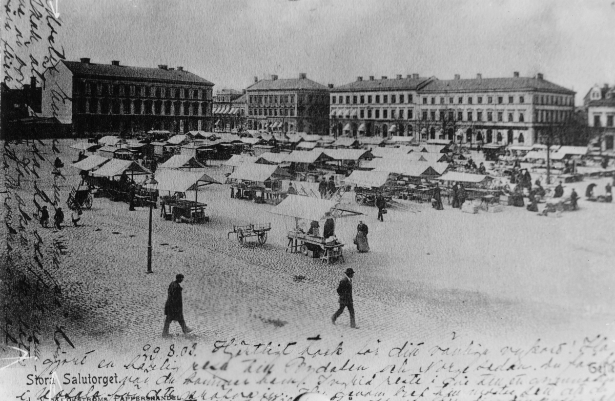 Vykort av Stortorget (Salutorget), skrivet 1903.