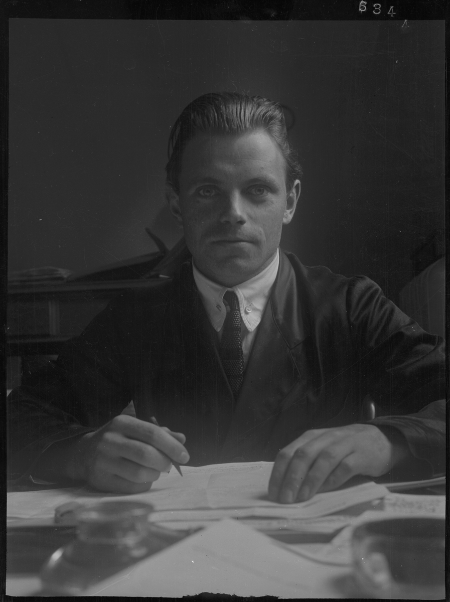 Hanna Olsson, Elna Brundins syster, kom till Stockholm och fick tjänst som kontorist på Städernas allmänna brandstodsbolag. Det här torde vara från kontoret. Mannen okänd.