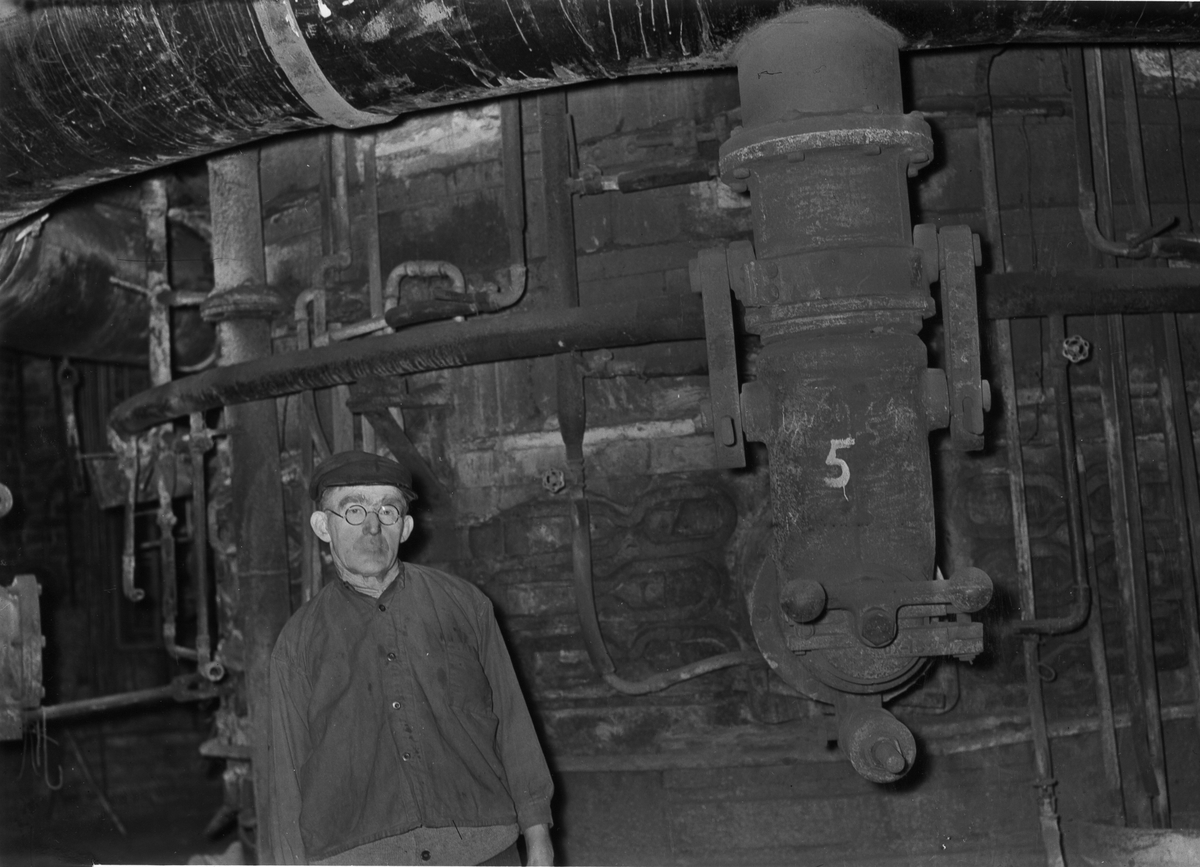 F H Zettermark i hyttan, där han arbetade. Foto den 4 februari 1954.