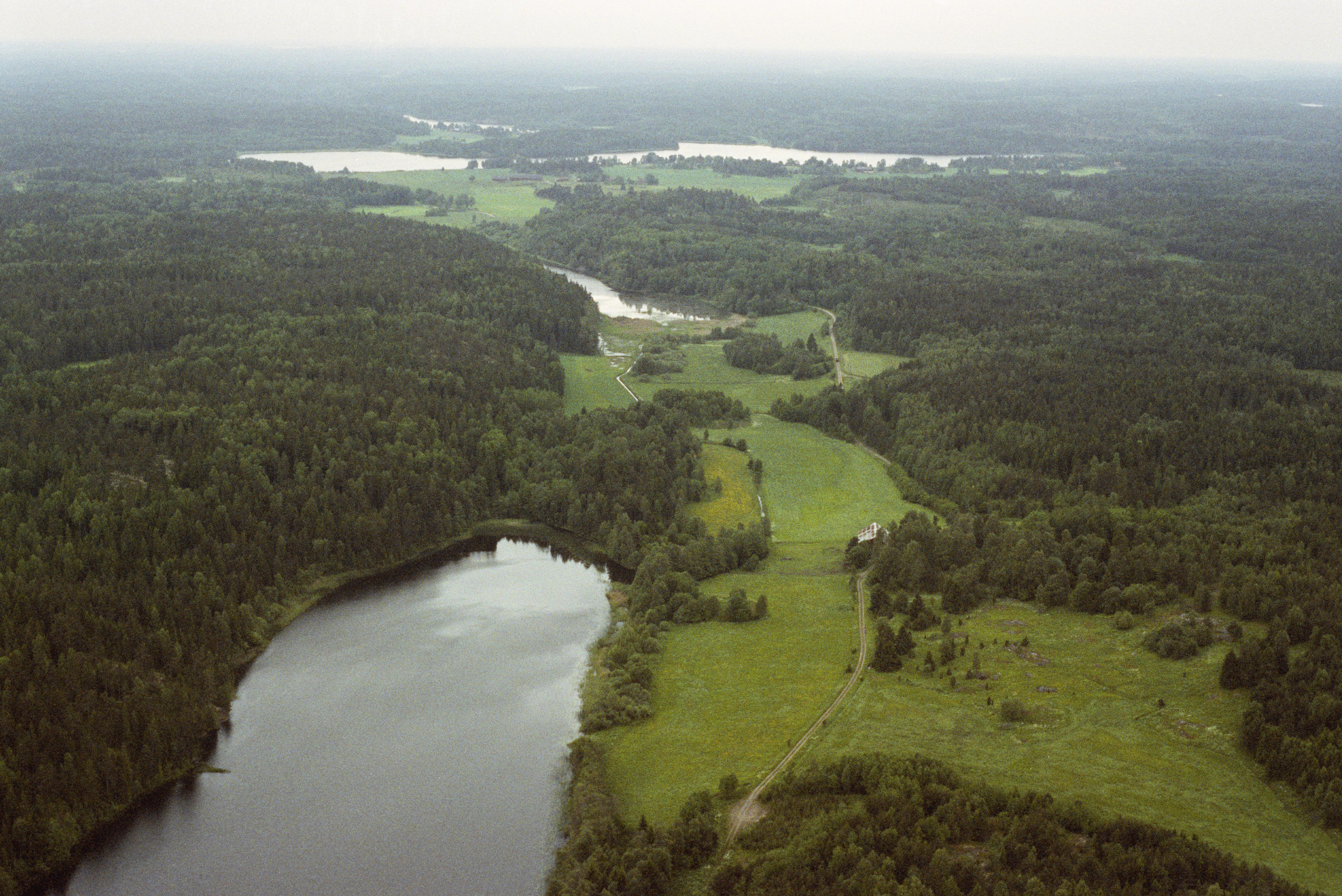 Fäglasjön i bildens nedre del. Vid bildens mitt Hagsjön och i bildens övre del Länna kyrksjö, från norr.