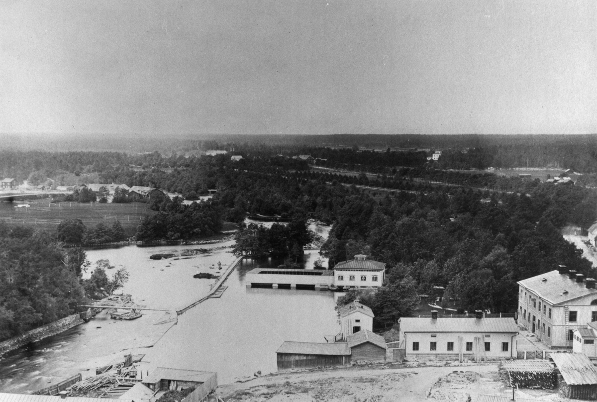 Parti av Stadsträdgården, Gävle Valskvarn och badhuset Najaden.