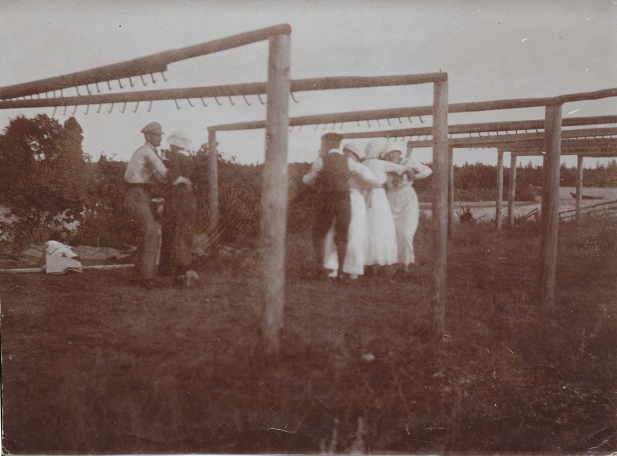 En svängom på gistvallen i Sikvik. David Brundin med Elna till vänster, övriga damer troligtvis Elnas systrar. Samma bild som EB 222.