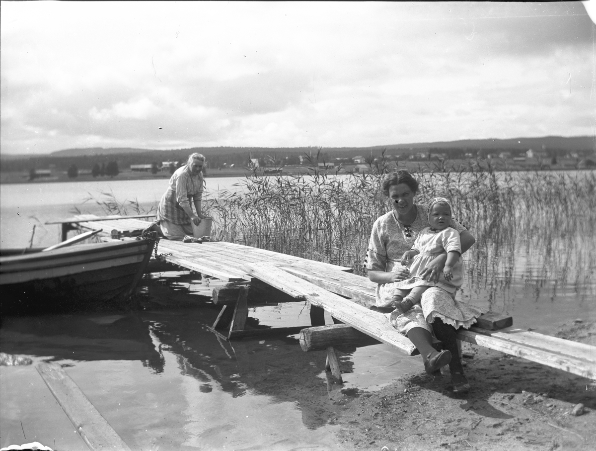 Familjen Brundin hyrde sommartid en disponentbostad till gjuteriet i Lingbo, som ligger vid en vacker sjö som heter Lingan, där man hade en brygga och båt. Här sitter Marta Brundin med något barn, kanske Margareta.